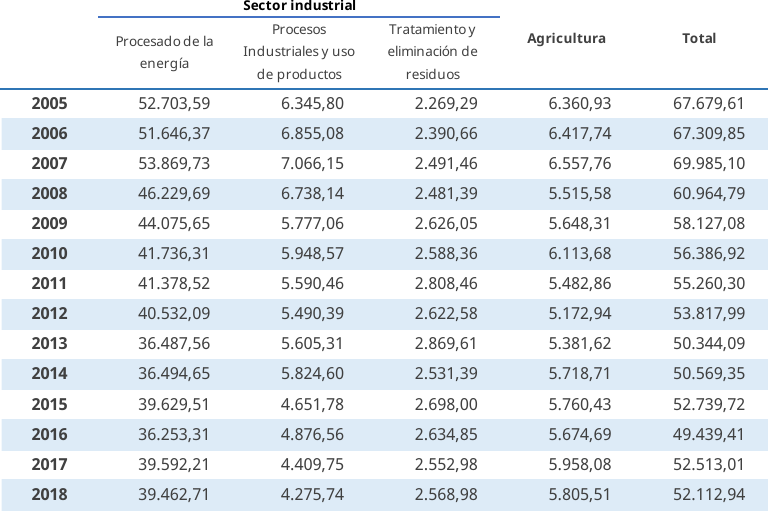 Evolución de las emisiones de CO₂ equivalentes por sector de actividad