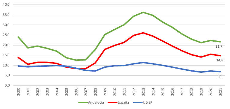 Andalucía cuenta con un amplio conjunto de grandes áreas metropolitanas, ciudades medias y municipios rurales de pequeño tamaño. Muchas de estas zonas rurales pierden población, a favor de las zonas urbanas, entre otros factores, a causa de las dificultades existentes en términos de desplazamientos hacia el lugar de trabajo, estudio, o centro de salud, por ejemplo.