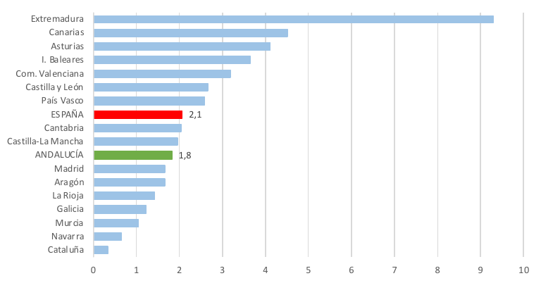 Colocaciones con oferta sobre el total de colocaciones por CCAA