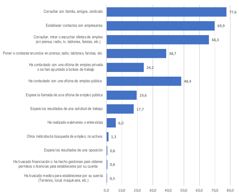 Fuente: IECA. Explotación de la Encuesta de Población Activa del INE. Nota: Los porcentajes no tienen que sumar cien al ser preguntas independientes. Datos de 2020.