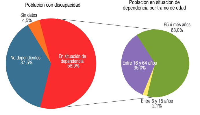 Además, existe un elevado porcentaje de personas, no siempre mayores, que aún no tiene reconocida ni su situación de dependencia ni recibe la prestación económica correspondiente, generando un impacto social y económico a las familias, especialmente a las mujeres que asumen su cuidado.