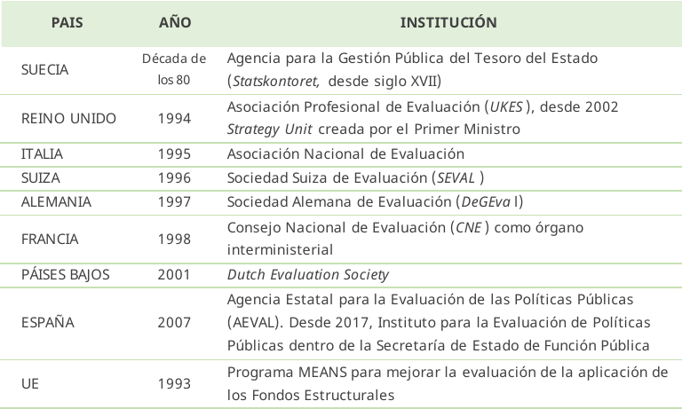 Institucionalización de la evaluación de políticas públicas en Europa: algunos hitos
