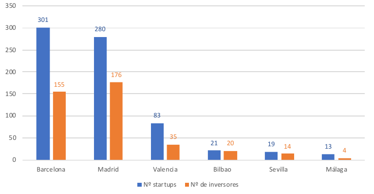 No obstante, el nacimiento de este tipo de empresas tecnológicas de rápido crecimiento tiende a concentrarse en determinadas ciudades, como Madrid y Barcelona, a tenor de los datos de la Asociación Española de Startups y del Observatorio Bankinter, que muestran esta desequilibrada localización que no contribuiría a resolver el problema de debilidad del tejido empresarial regional, a pesar de que Sevilla y Málaga aparezcan en el ranking de ciudades españolas con mayor número de startups y de inversores.